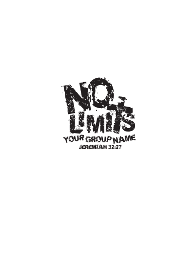 No Limits Based on Jeremiah 32:27 – I am the LORD, the God of all mankind. Is anything too hard for me? This says it all. Work with one of our friendly designers to customize this idea for your group today.